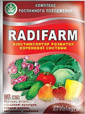 Radifarm – біостимулятор розвитку кореневої системи. Знімає стрес при висадці розсади, оновлює рослина після збору врожаю, підвищує дружність сходів. Є ефективним стимулятором латеральних коренів, що відіграють основну роль у харчуванні.
